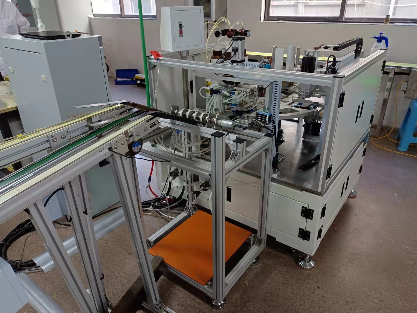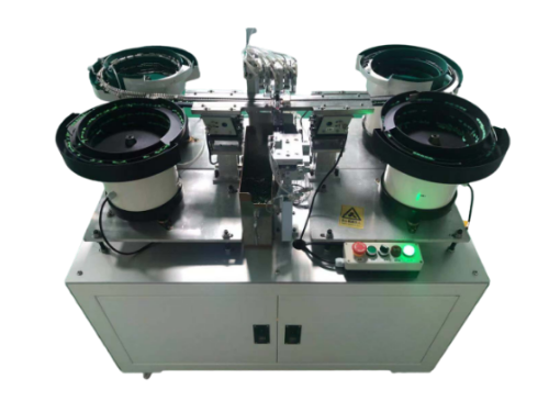 飞云电子科技有限公司自主研发的中段组护线套设备,运用振动盘自动排列多种物料至定位机构,实现多种物料的自动“上料+定位”;执行机构完全物料的组装,省去了人工取放物料的时间,大大提高了作业效率。
