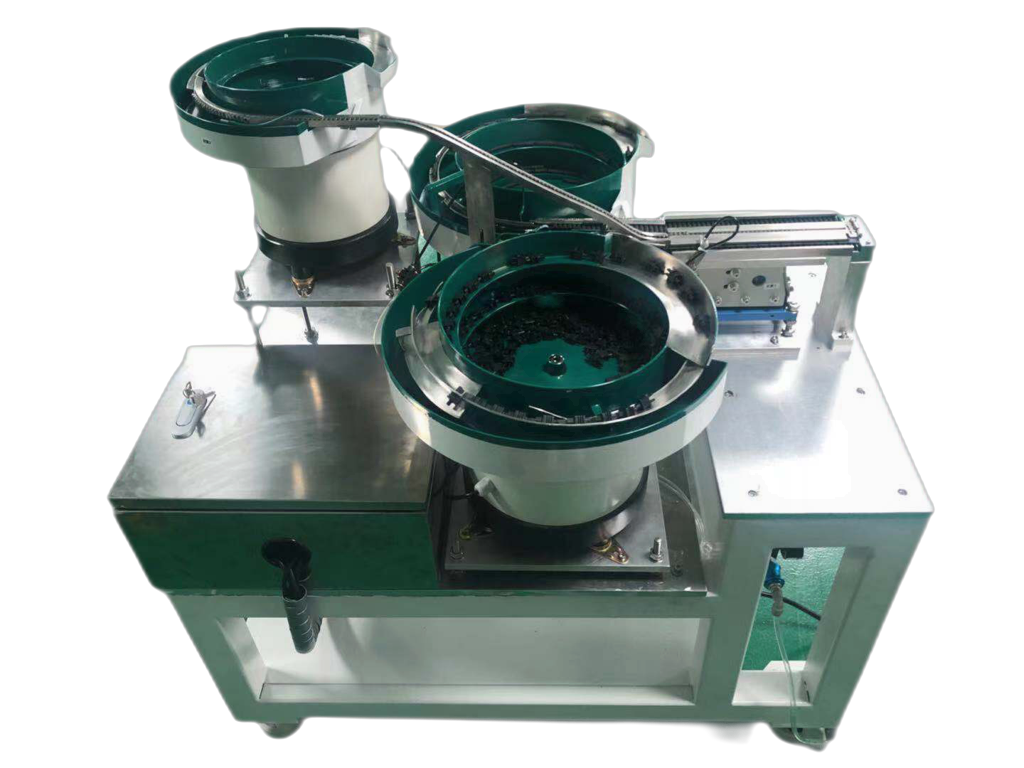 飞云电子科技有限公司自主研发的半自动穿散件机,运用振动盘自动排列多种物料至定位机构,实现多种物料的自动“上料+定位”;作业员负责穿线即可,省去了人工取放物料的时间,大大提高了作业效率。
