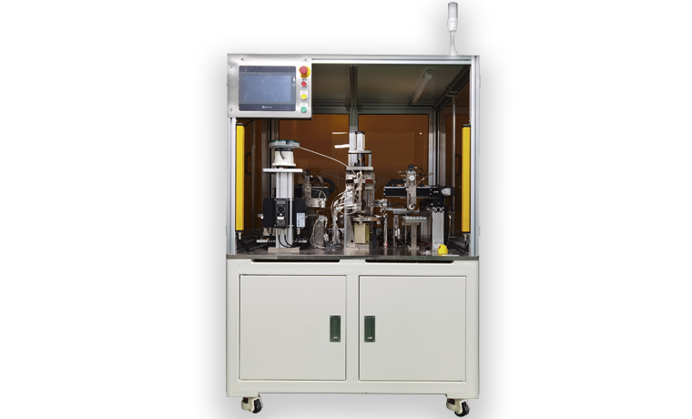 飞云公司自主研发的插芯压制设备,通过多工位并行结构,和精确的压力传感器和位移传感器,快速高效完成压制作业,为光通讯插芯制造厂家提供精密组装设备。